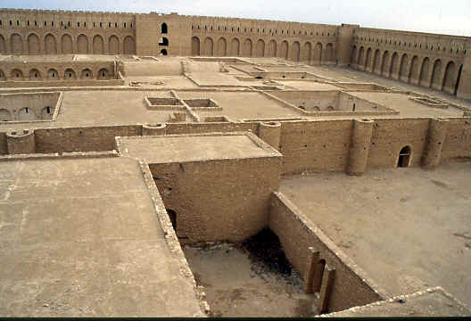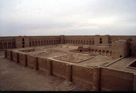 De nombreuses publications on été réalisée sur celui que l'on a longtemps appelé : le "Palais du désert iraqien". La date de sa construction est controversée, mais selon les textes, il semblerait qu'il ait été bâti en 762, par Issa ibn Ali, oncle du calife d'al-Mansur. A cette époque, ce palais portait le nom de Qasr al-Muqatil. Ce palais-forteresse est le palais le mieux conservée du début de l'époque abbasside. Il a été construit sur trois étages avec des pierre et des briques. L'édifice est entourée d'une épaisse enceinte avec quatre porte orientées sur les quatre points cardinaux mesure 175 x 169 mètres. La porte principale se trouve au nord. Sur les quatre coins se dressent quatre tours semi-circulaires. La construction intérieure est organisé axialement. Dernière la porte principale se trouve la salle la plus vaste salle d'al-Ukhadir, l'iwan mesure 15 mètres de long et 7 mètres de large. |
