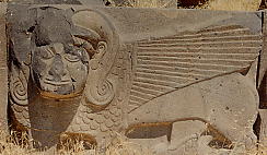 Le temps a malheureusement détruit la plus grande partie des statues de lions. Des grandes statues colossales, il ne reste que les bases faites de griffes de lion. |